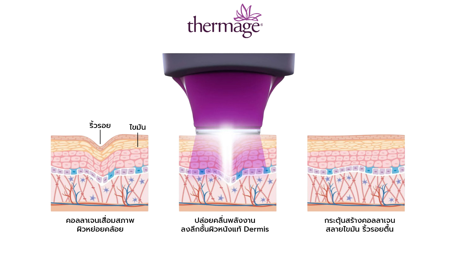 Thermage คือ การปล่อยพลังงานคลื่นความถี่วิทยุลงในชั้นผิวซ้ำ ๆ